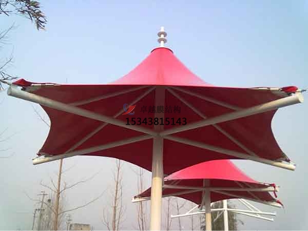 一個城市的中心區(qū)反映一個城市的地理風(fēng)貌和民族風(fēng)情,同時,也是一個城市文化發(fā)展程度的標(biāo)志。而景觀設(shè)計要求其具有廣泛的可讀性、雅俗共賞,既有超凡脫俗的藝術(shù)價值,又能使大眾喜聞樂見與大眾息息相通。膜結(jié)構(gòu)以其輕盈飄逸的造型、柔美并帶有力量的曲線和大跨度和大空間的鮮明個性和標(biāo)識性,應(yīng)用于城市小品設(shè)計中。
