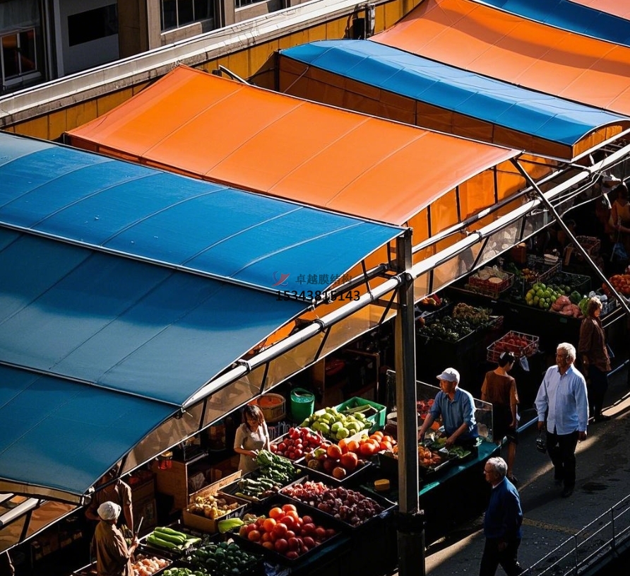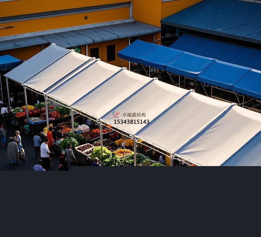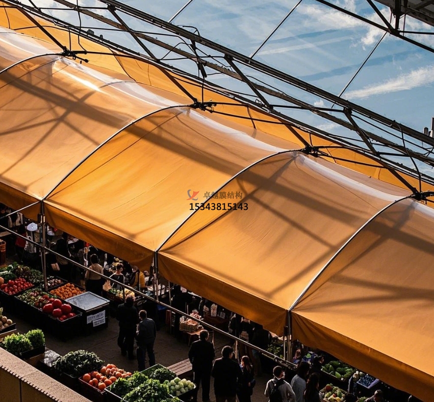 在城市的煙火氣味中,農(nóng)貿(mào)商場是不可或缺的存在,它承載著新鮮食材的匯聚與居民日常生活的快捷。但是,傳統(tǒng)農(nóng)貿(mào)商場頂棚在長期運用中暴露出許多問題,如年久失修易漏雨、空間布局局促、外觀陳腐等。膜結(jié)構頂棚的出現(xiàn),宛如一陣清風,為農(nóng)貿(mào)商場帶來了全新的生機與革新。
