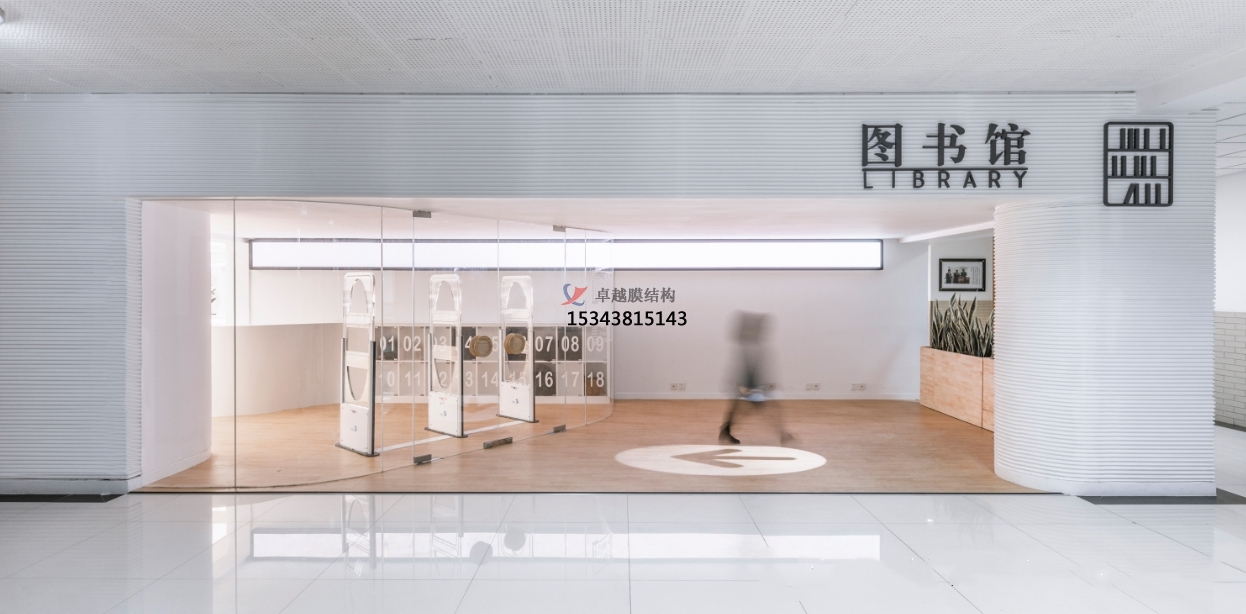 膜結(jié)構(gòu)頂棚可以有效地遮擋陽光和雨水,為圖書館內(nèi)部提供一個舒適的環(huán)境。同時,膜材料的透光性也可以保證室內(nèi)有足夠的自然光線。