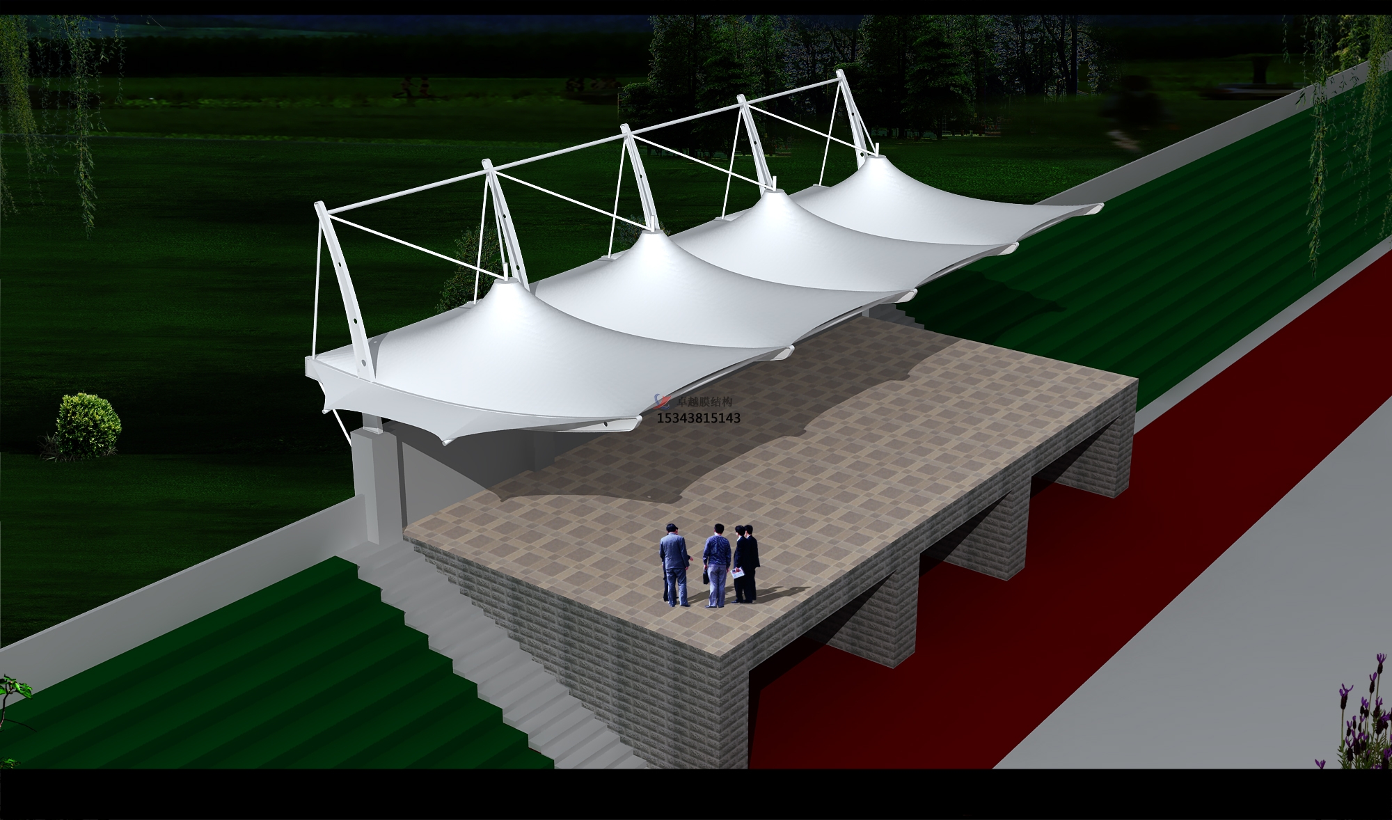 膜結(jié)構(gòu)遮陽棚作為室外膜結(jié)構(gòu)建筑,自然需要考慮在各種氣候條件下荷載及受力情況。由于膜材是柔性的新型建筑材料,具有一定的伸縮性 ,膜面在荷載的作用下會有一定的變形 ,所以景觀膜結(jié)構(gòu)建筑對“雨”和"雪” 是比較敏感的。膜結(jié)構(gòu)的建筑設(shè)計和結(jié)構(gòu)設(shè)計階段都必須充分考慮“排水”和“排雪”問題。否則,會留下很大的隱患。以往很多景觀膜結(jié)構(gòu)的工程事故中,這個問題是導致事故的主要原因之一 。