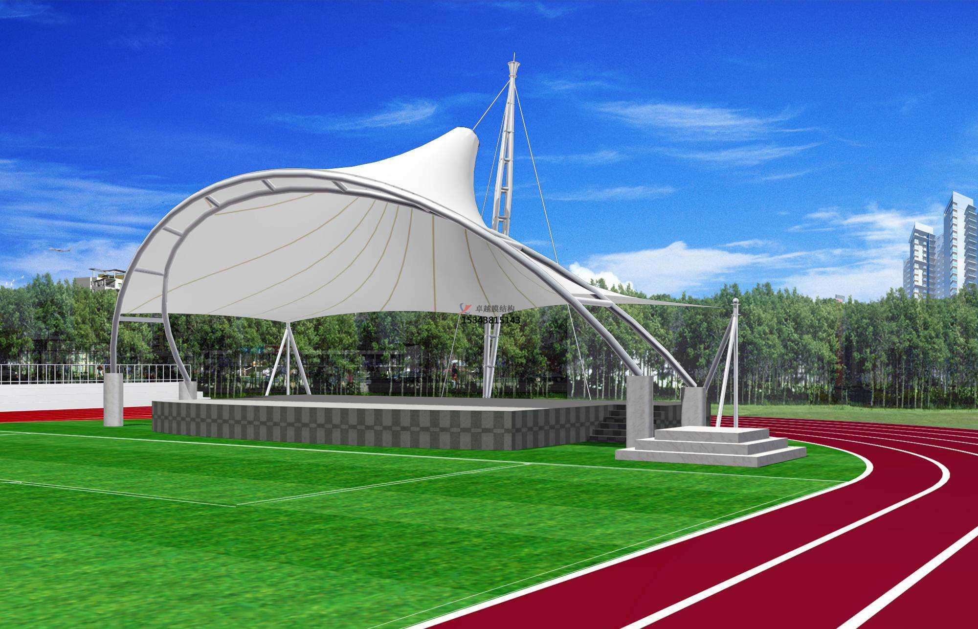 張拉膜看臺(tái)主要用于各類地方體育場(chǎng)主席臺(tái)雨棚,各類學(xué)校體育場(chǎng)看臺(tái)雨棚遮蓋,我公司是國(guó)內(nèi)較早從事大懸挑張拉膜結(jié)構(gòu)看臺(tái)設(shè)計(jì)施工的專業(yè)廠家,下面介紹一下我們?cè)诒6ㄊ兄苓吙h市完工的一些張拉膜看臺(tái)設(shè)計(jì)施工案例,我公司先后在保定市周邊承接了保定學(xué)院看臺(tái)雨棚、保定市第七中學(xué)張拉膜看臺(tái)罩棚、保定動(dòng)力工程技工學(xué)校張拉膜看臺(tái)遮陽棚張拉膜看臺(tái)遮陽棚等設(shè)計(jì)施工項(xiàng)目,簡(jiǎn)介如下: