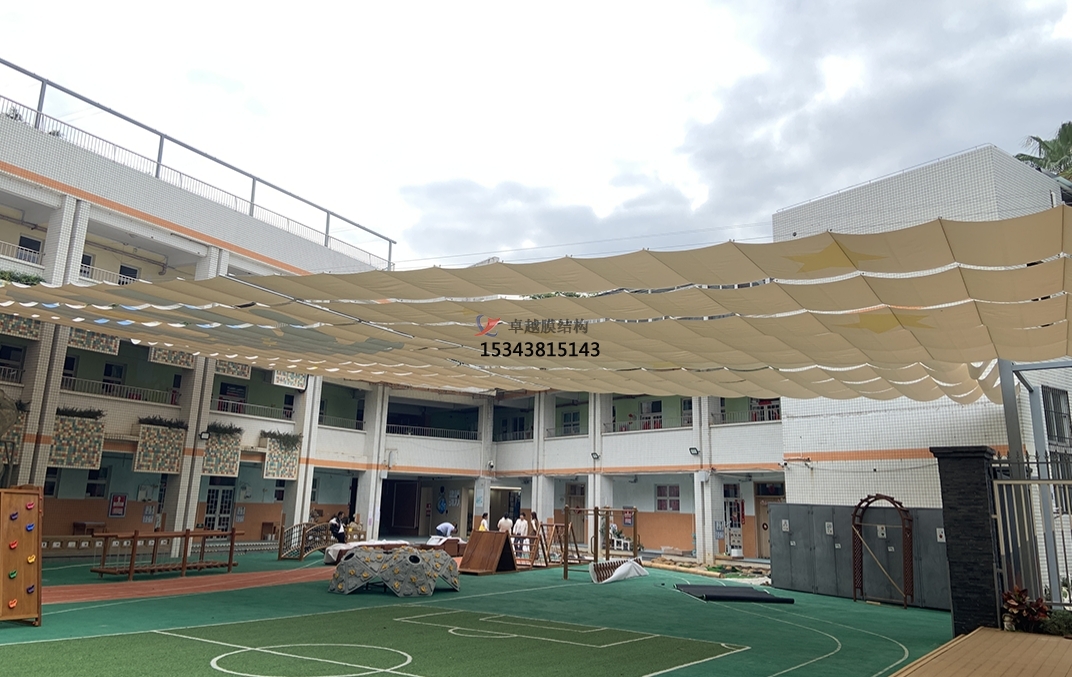 幼兒園膜結(jié)構(gòu)遮陽棚是一種新型的建筑結(jié)構(gòu)形式,具有多種優(yōu)點,如經(jīng)濟性、藝術(shù)性和美觀、透光、節(jié)能、環(huán)保、抗紫外線、耐候性好、使用壽命長、大跨度無柱大空間、自重輕、抗震性能佳、防火、防潮、自潔等。它適用于多種使用環(huán)境,包括從阿拉斯加到沙特阿拉伯等廣泛的地區(qū),以及從單人帳篷、花園小品到覆蓋幾萬、幾十萬平方米的建筑等各種范圍。此外,膜結(jié)構(gòu)遮陽棚的安全性也相對較高,適合在幼兒園等場所使用。