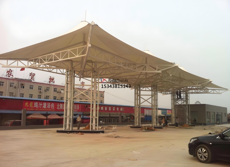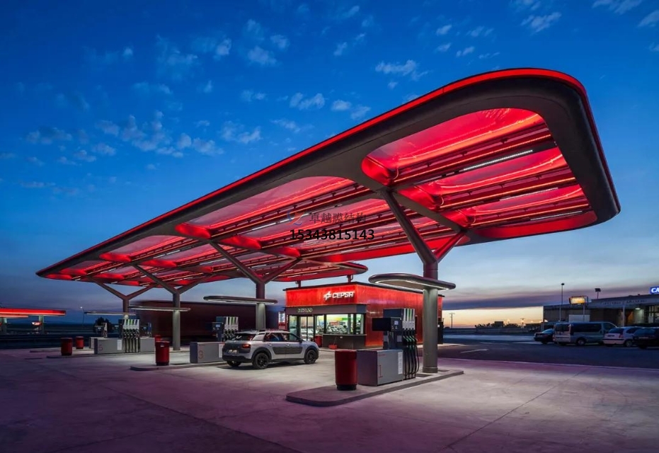 支 撐系統(tǒng)則根據(jù)加油站的規(guī)模和設(shè)計(jì)需求,選用鋼結(jié)構(gòu)或鋁合金結(jié)構(gòu)。鋼結(jié)構(gòu)支撐具有較高的強(qiáng)度和穩(wěn)定性,能夠適應(yīng)各種復(fù)雜的地形和氣候條件,通過合理的力學(xué)設(shè)計(jì),將膜材所承受的荷載均勻傳遞至基礎(chǔ)。鋁合金結(jié)構(gòu)則以其輕質(zhì)、耐腐蝕的特點(diǎn),在一些對重量有嚴(yán)格要求或環(huán)境較為惡劣的地區(qū)備受青睞,減輕了基礎(chǔ)的承載壓力,同時(shí)降低了維護(hù)成本。