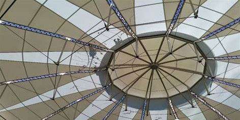 索膜結(jié)構(gòu)建筑的核心組成及原理:索膜結(jié)構(gòu)建筑主要是由膜材、索結(jié)構(gòu)和支撐系統(tǒng)組成。其中膜材常用PTFE涂層玻璃纖維膜或PVC涂層聚酯纖維膜,具備高強(qiáng)度、自潔性、耐候性及透光性(透光率10%-20%),使用壽命可達(dá)25年以上。索結(jié)構(gòu)是通過(guò)徑向索、環(huán)向索、飛柱等構(gòu)件施加張力,形成穩(wěn)定受力體系,如無(wú)錫奧體中心體育場(chǎng)采用128根徑向索+6根環(huán)向索的索網(wǎng)結(jié)構(gòu)。支撐系統(tǒng)是指鋼架、桅桿或混凝土基礎(chǔ)提供錨固點(diǎn),與膜索協(xié)同承載風(fēng)、雪荷載。