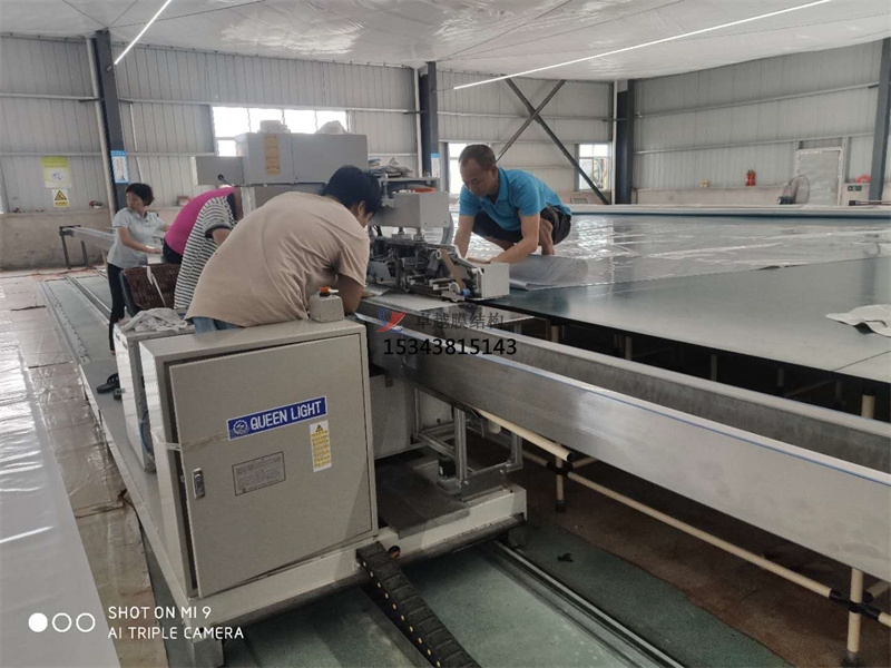 現(xiàn)場安裝測試第片膜材。帶充氣管道的項目。