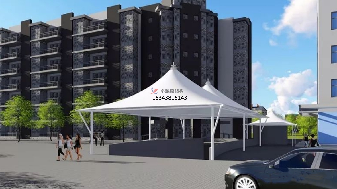 4、坡道雨棚材料選擇廣:關(guān)于雨棚篷布材料,有多種膜結(jié)構(gòu)材料可以選擇,常見(jiàn)的有PVDF、PTFE、ETFE等,每種材料結(jié)構(gòu)都有不同的性能特點(diǎn);