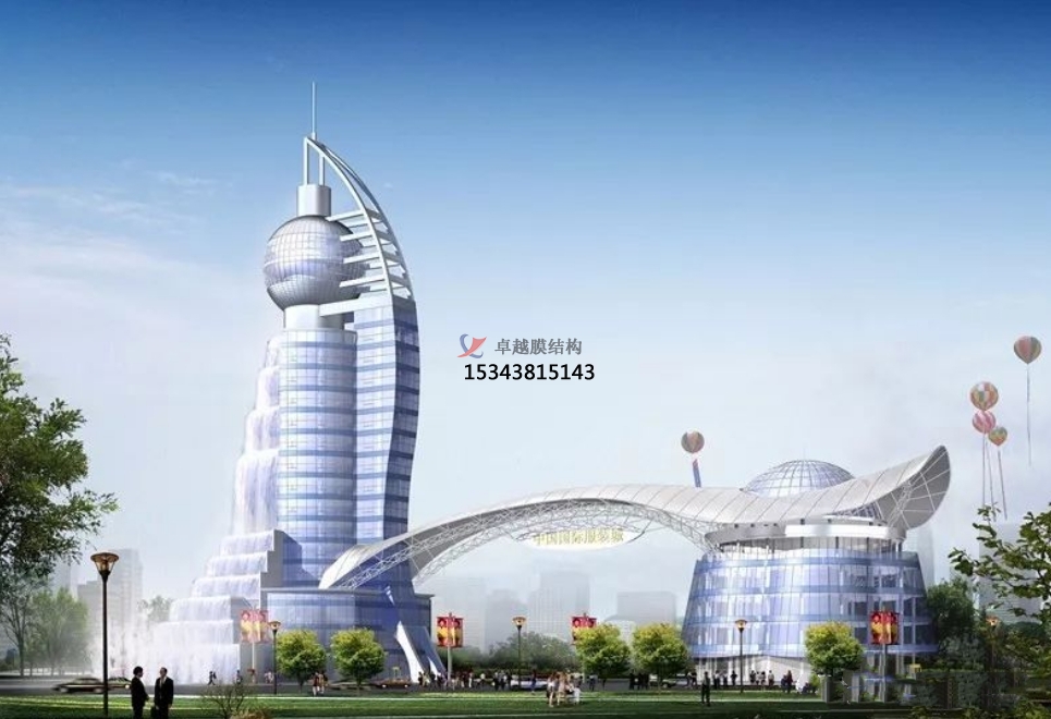 膜結(jié)構(gòu)大門作為建筑或景區(qū)入口,用來遮風擋雨,也是景區(qū)的臉面,是景區(qū)神韻的表達,不僅要求其造型新穎,有創(chuàng)意,而且還要考慮建造材質(zhì)。