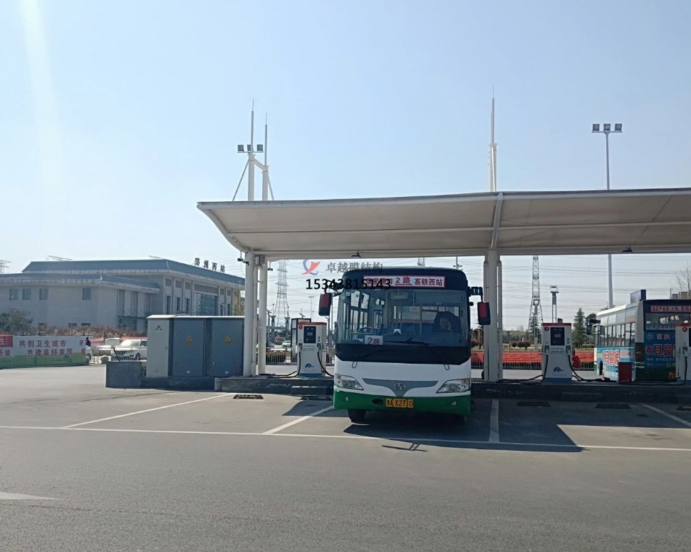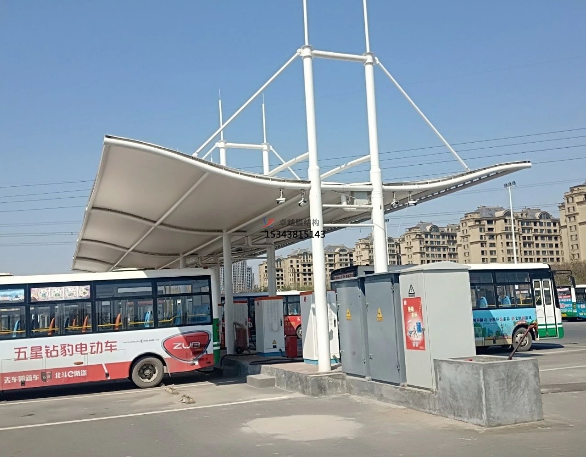 膜結構車棚在此發(fā)揮了重要作用。一般采用骨架式,先用鋼材制成骨架,然后安裝膜材,通過加強構建(鋼索、鋼柱)使其內部產生一定的張力行程車棚形狀,能夠承受一定的風載荷跟雪載荷。使用張拉式的也比較多。也有使用充氣式的,這種比較高端維護成本比較高使用比較少。