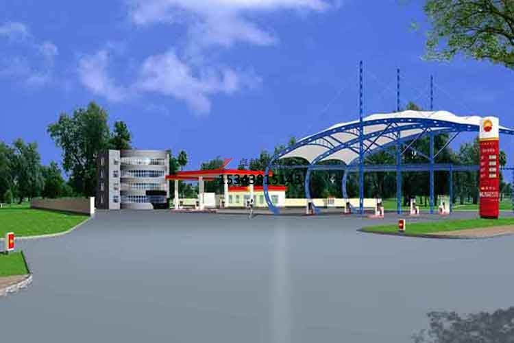 三、膜結(jié)構(gòu)加油站頂棚采用的材料主要包括鋼結(jié)構(gòu)框架和建筑膜布覆蓋材料,具有很好的防火、防水、防腐蝕等性能,正常使用年限可達(dá)到30年以上。
