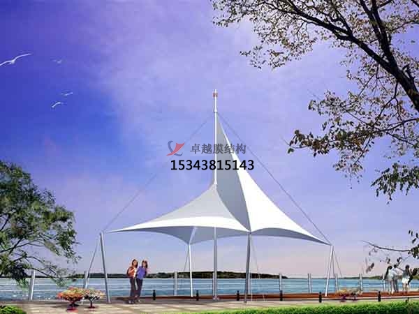 2、景觀膜結(jié)構(gòu)是目前發(fā)展很快的一種新型空間結(jié)構(gòu),是一種效率極高的張力集成體系,可以充分發(fā)揮鋼索的強度與張拉整體結(jié)構(gòu)的空間作用。它通過鋼骨架、鋼索與膜材共同受力形式穩(wěn)定曲面來覆蓋建筑空間,具有高度的形體可塑性和結(jié)構(gòu)靈活性,即通過對膜材內(nèi)部施加一定的預(yù)張力,使其具備了抵抗外荷載能力,從而充當(dāng)結(jié)構(gòu)材料的一種結(jié)構(gòu)體系。我公司先后在寧波地區(qū)承接了寧波新世界廣場景觀、寧波時代廣場景觀、寧波工業(yè)園區(qū)景觀小品的設(shè)計施工,簡介如下: