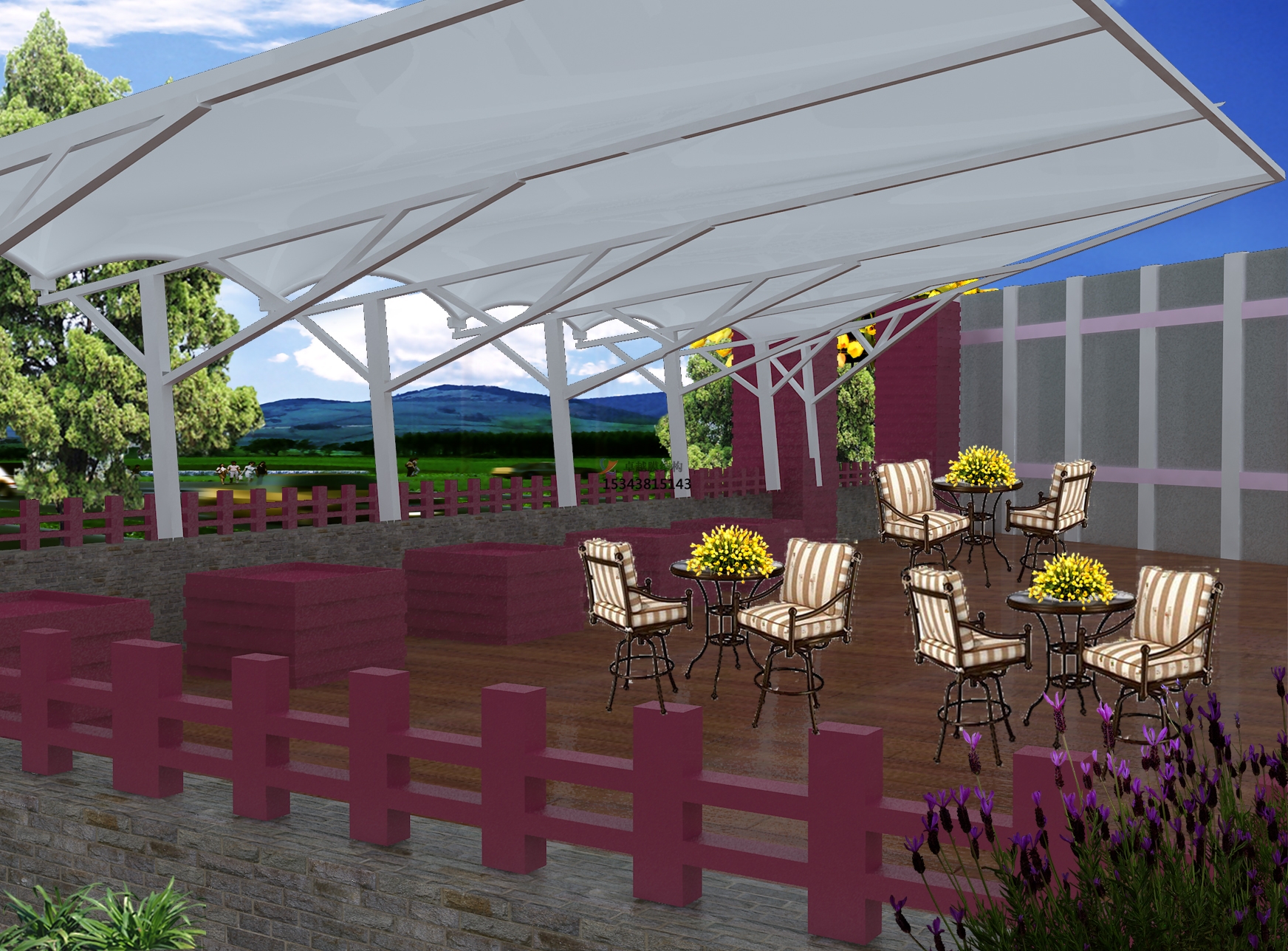 工程結(jié)構(gòu)形式:四周硬邊式膜結(jié)構(gòu)景觀