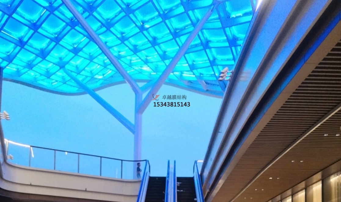杭州銀泰廣場的波浪形ETFE天幕,白天透光率達(dá)40%以上,減少人工照明需求;夜晚結(jié)合LED燈光系統(tǒng),形成動(dòng)態(tài)光影藝術(shù)場景。