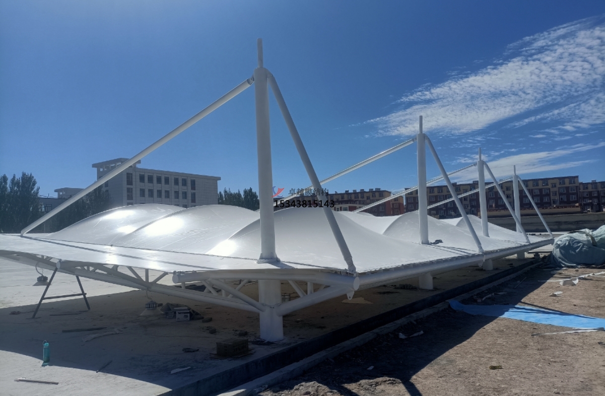 膜結構材料具有較好的耐久性和自潔性。一般情況下,只需要定期進行簡單的清潔和檢查,不需要像傳統(tǒng)建筑結構那樣頻繁地進行大規(guī)模的維修和保養(yǎng)。選擇具有自潔性的膜材,表面的自潔涂層可以在雨水的沖刷下自動清潔灰塵和污漬,大大降低了維護成本。