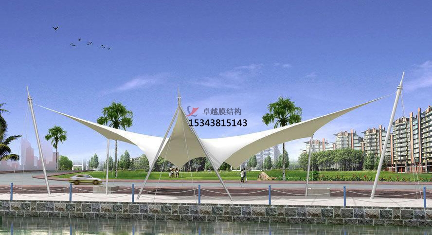 景觀膜結構遮陽棚如果要按照各種不同的結構形式,分為各種不同的結構,就比如它們可以分為鋼結構或者是充氣結構,當然也要按照所有的膜材料的特性分為永久性的膜結構,這些景觀膜結構遮陽棚在實際性進行加工的過程當中將也有著20多年的年限,如果是半永久性的膜結構,基本上使用年限也都是在十年左右。