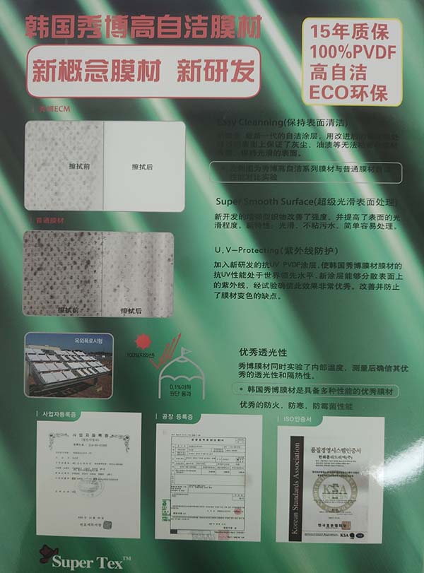 更新研發(fā)的ECM納米抗UV自潔世界很好的建筑空間膜材新技術(shù)