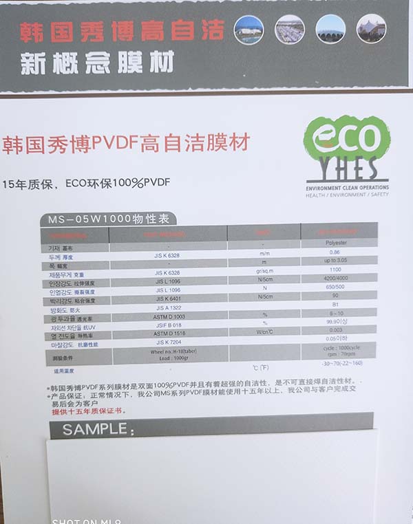 秀博工業(yè)集團(tuán)全新開(kāi)發(fā)的納米抗UV,ECM膜材,全新的納米層可使膜材使用壽命達(dá)到15 年并不發(fā)黃變色,持久如新。同時(shí)通過(guò)ECO環(huán)