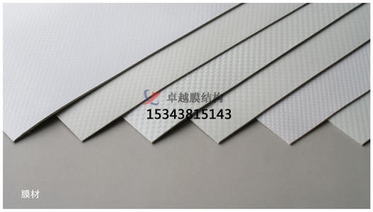 張拉膜結(jié)構(gòu)所用的膜材是一種新興的建筑材料,已被公認為是繼磚、石、混凝土、鋼和木材之后的"六種建筑材料。張拉膜結(jié)構(gòu)所用的膜材是指以聚酯纖維或玻璃纖維為基布并附有不同的表面涂層,可承受一定載荷的建筑紡織品。膜材由基布和涂層兩部分組成?;贾饕捎镁埘ダw維或玻璃纖維材料等;涂層材料主要采用聚氯乙烯和聚四氟乙烯等。