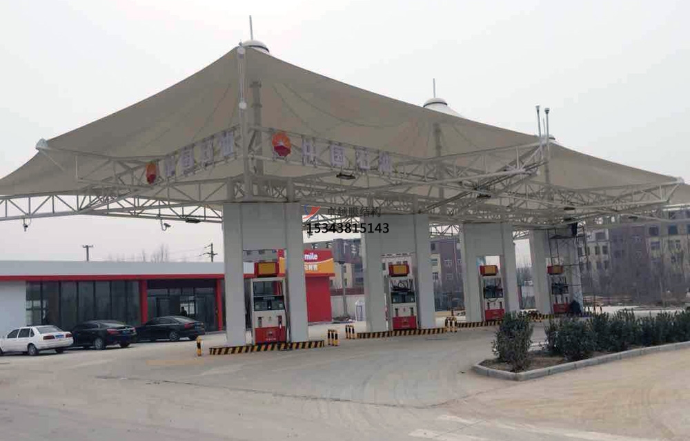 加油站膜結(jié)構(gòu),一般是指安裝在加油站的膜結(jié)構(gòu)頂棚。膜結(jié)構(gòu)頂棚因其自重輕,具有良好的受力特色,所以成為大跨度空間結(jié)構(gòu)的主要形式之一,加油站膜結(jié)構(gòu)也屬于其范疇。