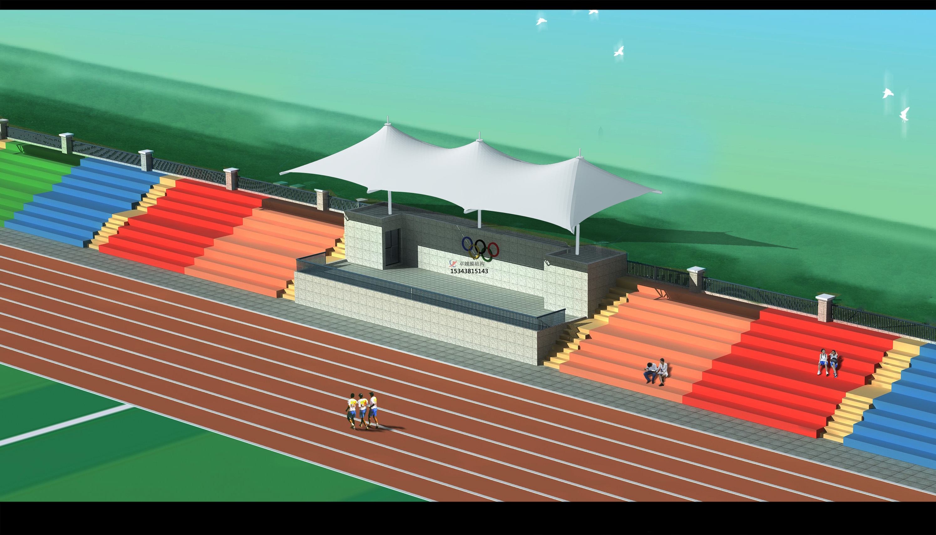 ?。?)施加預(yù)張力后的看臺(tái)體系在承受外荷載之前的初始形狀需要通過(guò)找形這一步驟來(lái)確定在對(duì)看臺(tái)體系進(jìn)行設(shè)計(jì)分析時(shí),很好的先要給定結(jié)構(gòu)的邊界條件。而結(jié)構(gòu)預(yù)張拉后在空間上的確定幾何形狀還無(wú)法預(yù)知。如何確定在給定邊界條件下看臺(tái)結(jié)構(gòu)的空間幾何形狀及與之相應(yīng)的預(yù)張力分布就是找形所要解決的問(wèn)題??磁_(tái)體系的找形問(wèn)題有別于結(jié)構(gòu)的荷載分析問(wèn)題。進(jìn)行荷載分析時(shí),結(jié)構(gòu)的初始形狀是確定的、平衡的(一般非張拉結(jié)構(gòu)所有構(gòu)件內(nèi)力為零)。而找形時(shí)并沒(méi)有一個(gè)確定的、處于平衡狀態(tài)的初始形狀,需要從假定的幾何形狀和預(yù)張力分布出發(fā)來(lái)尋找這個(gè)可用于荷載分析的初始形狀。所得結(jié)果一要滿足邊界條件,二要滿足其預(yù)張力分布處處平衡。找形方法可分為物理方法和數(shù)值方法兩類(lèi),物理方法即為模型實(shí)驗(yàn)的方法,而數(shù)值方法又有非線性有限元法、力密度法、自然形狀法和動(dòng)力松馳法等等。膜面的初始形狀一般應(yīng)有向上和向下兩個(gè)方向的曲率,避免過(guò)分平坦,以抵抗風(fēng)壓力和風(fēng)吸力,這應(yīng)是檢驗(yàn)和調(diào)整找形結(jié)果的一個(gè)基本原則。