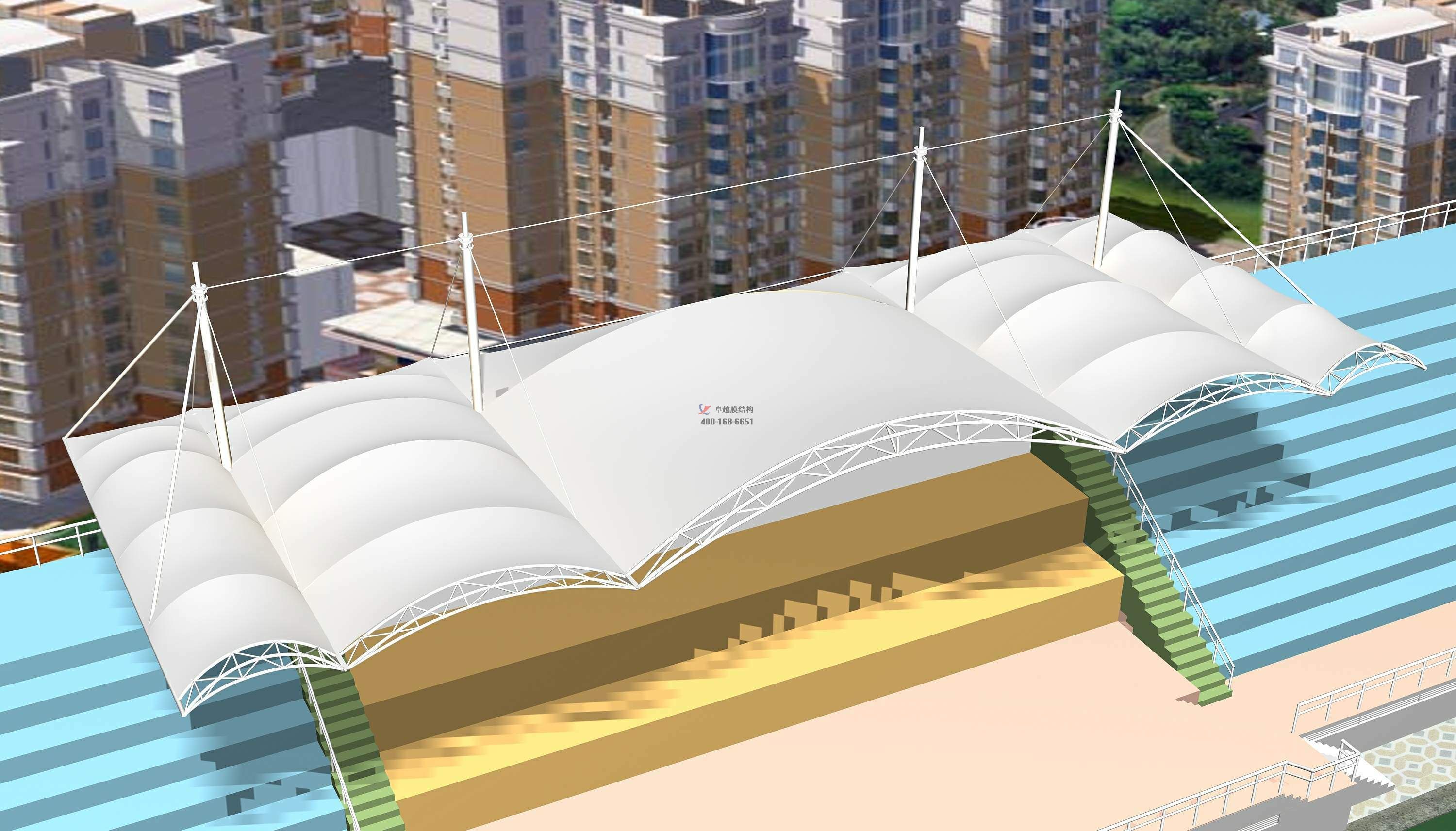 卓越擁有看臺膜結(jié)構(gòu)設(shè)計一級資質(zhì)、膜結(jié)構(gòu)制作二級資質(zhì),膜結(jié)構(gòu)安裝二級資質(zhì),鋼結(jié)構(gòu)專業(yè)承包三級資質(zhì)。立足鄭州服務(wù)全國,完工案例上千項,遍布全國各地。專業(yè)設(shè)計團(tuán)隊,一級結(jié)構(gòu)工程師領(lǐng)銜,所有項目均經(jīng)專業(yè)結(jié)構(gòu)計算軟件計算滿足,保證質(zhì)量,保證結(jié)構(gòu)安全,歡迎來電咨詢采購,聯(lián)系電話:17698102388,期待為您服務(wù)。