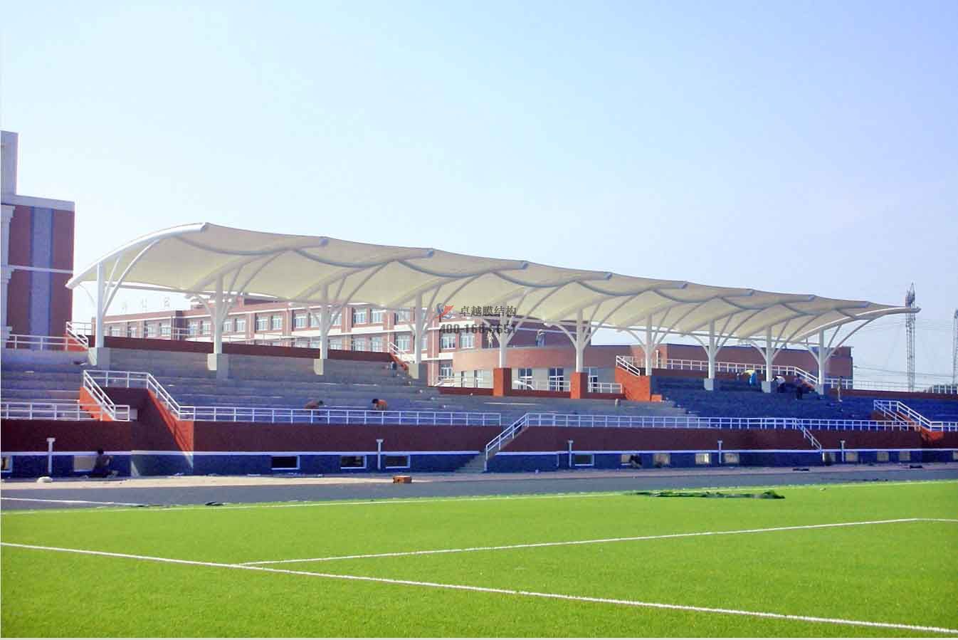 膜結(jié)構(gòu)作為大跨度體育場和體育場館的主要受力構(gòu)件和新型屋面體系,直接影響著建筑的安全性和功能。目前,膜結(jié)構(gòu)體育場看臺在我國得到了廣泛的應(yīng)用。膜結(jié)構(gòu)建筑能很好地覆蓋整個看臺。膜結(jié)構(gòu)的張拉式使建筑的空間跨度更大,同時降低了建筑的整體重量,使建筑更容易、更安全。這也是人們選擇膜結(jié)構(gòu)的重要原因。