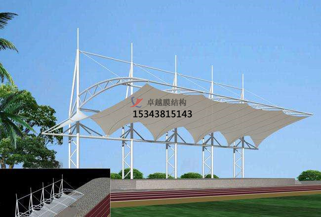 看臺(tái)膜結(jié)構(gòu)是用高強(qiáng)度柔性薄膜材料經(jīng)受其它材料的拉壓作用而形成的穩(wěn)定曲面,能承受一定外荷載的空間結(jié)構(gòu)形式。 其造型自由、輕巧、美,充滿(mǎn)力量感,阻燃、制作簡(jiǎn)易、安裝快捷、節(jié)能易于、使用安全等優(yōu)點(diǎn).因而使它在世界各地受到廣泛應(yīng)用。