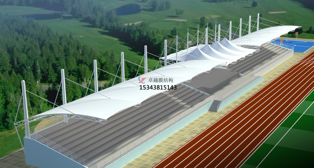 張拉膜看臺主要用于各類地方體育場主席臺雨棚,各類學(xué)校體育場看臺雨棚遮蓋,我公司是國內(nèi)較早從事大懸挑張拉膜結(jié)構(gòu)看臺設(shè)計施工的專業(yè)廠家,下面介紹一下我們在承德市周邊縣市完工的一些張拉膜看臺設(shè)計施工案例,我公司先后在承德市周邊承接了張家口學(xué)院看臺雨棚、承德體育運動學(xué)校張拉膜看臺罩棚、河北承德第中學(xué)張拉膜看臺遮陽棚張拉膜看臺遮陽棚等設(shè)計施工項目,簡介如下:
