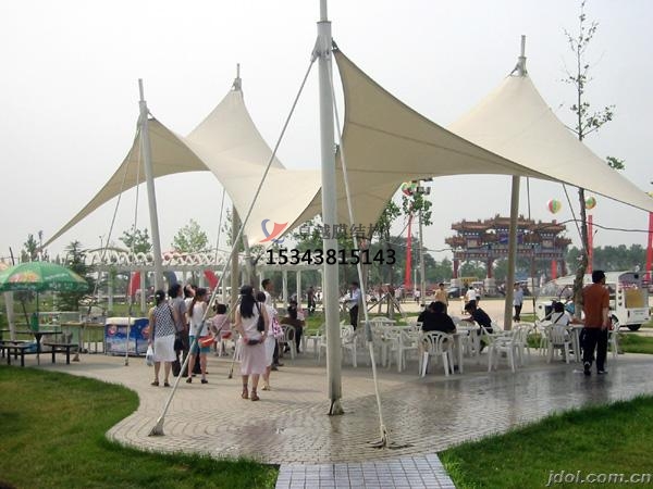 2、一個城市的中心區(qū)反映一個城市的地理風貌和民族風情,同時,也是一個城市文化發(fā)展程度的標志。而景觀設(shè)計要求其具有廣泛的可讀性、雅俗共賞,既有超凡脫俗的藝術(shù)價值,又能使大眾喜聞樂見與大眾息息相通。張拉膜以其輕盈飄逸的造型、柔美并帶有力量的曲線和大跨度和大空間的鮮明個性和標識性,應用于城市小品設(shè)計中。