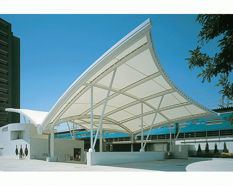該膜結(jié)構(gòu)建筑的建筑面積為1200平方米,總高度為14.5米。整個建筑由兩個膜結(jié)構(gòu)支架組成,支架之間形成了一個三角形的形狀。膜結(jié)構(gòu)支架采用了高強(qiáng)度鋼材制造,具有耐腐蝕、耐高溫、耐磨損等特點(diǎn),保證了建筑的耐久性和安全性。膜結(jié)構(gòu)建筑的膜材料采用了高強(qiáng)度聚酯纖維材料,具有輕質(zhì)、高強(qiáng)、防水、防紫外線等功能,保證了建筑的舒適性和長期使用壽命。膜結(jié)構(gòu)建筑的屋頂采用了張拉膜技術(shù),使得膜材料能夠被張緊,形成一個平整的屋頂表面。