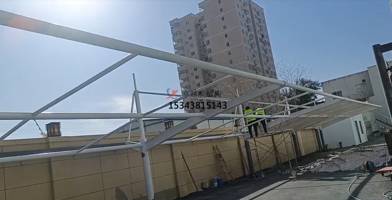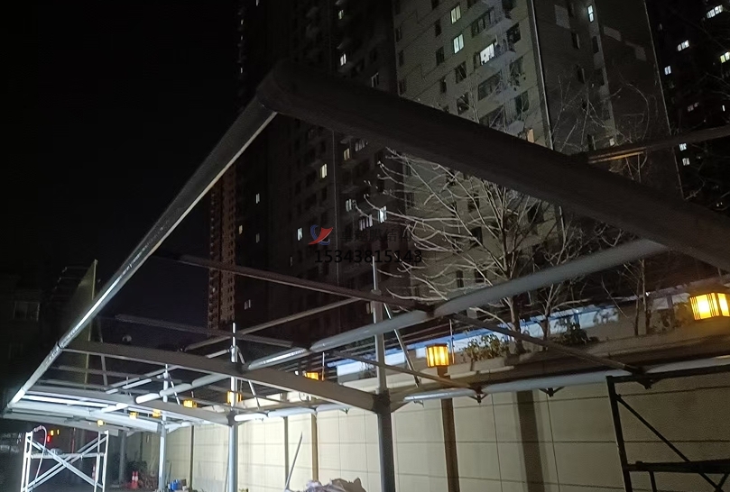 項目地點:河南省鄭州市金水區(qū)福元路158號 展開面積:780.45㎡ 膜結構車棚的功能與使用價值?: ?1、防曬防紫外線?:膜結構車棚能夠有效地阻擋陽光直射,降低車內溫度,為駕駛員和乘客提供一個舒適、涼爽的環(huán)境?。 ?2、防風防雨?:在惡劣天氣條件下,膜結構車棚可以有效地阻擋風雨侵襲,保護車輛和車內物品的安全?。 ?3、空間利用?:設計充分考慮了汽車停車空間的使用需求,可以很好地與現(xiàn)有的停車設施相結合,為車主提供更多的停車選擇?" />