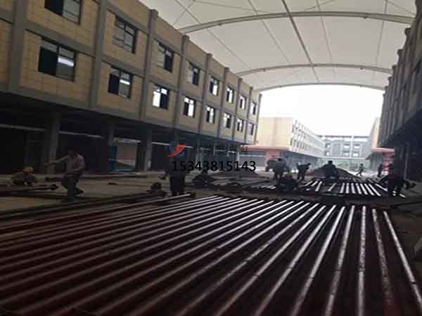 2、膜結(jié)構(gòu)的膜材制作是在專用膜材料加工廠熱合加工而成,通過現(xiàn)場組裝預(yù)制構(gòu)件(膜片、索等)而實現(xiàn)的。