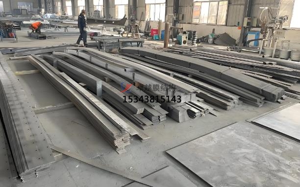 膜結(jié)構(gòu)生產(chǎn)的材料和加工:膜結(jié)構(gòu)的主要材料包括膜材和鋼結(jié)構(gòu)。根據(jù)設(shè)計(jì)要求,采購合適的膜材。常見的膜材有聚四氟乙烯(PTFE)膜材、聚氯乙烯(PVC)膜材等,采購時(shí)需注意膜材的質(zhì)量、性能和規(guī)格是否符合要求。我們的膜材通常采用進(jìn)口材料,具有高標(biāo)準(zhǔn)的阻燃、自潔和耐久性能。鋼結(jié)構(gòu)部分則根據(jù)設(shè)計(jì)圖紙進(jìn)行切割、焊接和打磨,確保其尺寸精確和表面光滑。我們會(huì)根據(jù)支撐結(jié)構(gòu)的設(shè)計(jì)要求,采購鋼材、鋁合金等材料,并進(jìn)行檢驗(yàn)和預(yù)處理,如除銹、防腐處理等。膜材的加工包括裁剪和焊接,使用先進(jìn)的裁剪及焊接生產(chǎn)線進(jìn)行,確保膜材的拼接精確和牢固。鋼結(jié)構(gòu)部分則通過CAD編輯到等離子切割,割出形狀后,用扁鐵包邊、打磨和刷油漆,確保其質(zhì)量和外觀。膜結(jié)構(gòu)的加工制作,膜結(jié)構(gòu)的展開形狀和尺寸,結(jié)合膜材的幅寬和特性,進(jìn)行裁剪設(shè)計(jì),確定每一塊膜片的形狀和尺寸,同時(shí)考慮到拼接縫的位置和方式,以減少材料浪費(fèi)和提高結(jié)構(gòu)性能。裁剪會(huì)使用到專業(yè)的裁剪設(shè)備,如數(shù)控裁剪機(jī),按照裁剪設(shè)計(jì)的圖紙對(duì)膜材進(jìn)行精確裁剪。裁剪過程中要注意控制裁剪精度,避免出現(xiàn)尺寸偏差和邊緣損傷。拼接縫合,將裁剪好的膜片通過熱合、縫合等方式進(jìn)行拼接,形成完整的膜結(jié)構(gòu)。拼接處要保證密封性能和強(qiáng)度,通常采用專用的膜材焊接設(shè)備或縫紉機(jī)進(jìn)行加工。支撐結(jié)構(gòu)的制作,支撐結(jié)構(gòu)也叫預(yù)埋件,預(yù)埋件的制作根據(jù)膜結(jié)構(gòu)的大小和設(shè)計(jì)要求進(jìn)行,厚度和長寬由CAD編輯到等離子切割而來。基礎(chǔ)施工包括放線、切割地面、挖機(jī)破碎地面、混凝土放預(yù)埋板和地面修復(fù)等步驟。安裝過程中,將膜材與鋼結(jié)構(gòu)進(jìn)行精確連接,確保膜結(jié)構(gòu)的張拉和固定,使其在實(shí)際應(yīng)用中能夠承受各種環(huán)境條件,確保膜結(jié)構(gòu)的穩(wěn)固安裝。