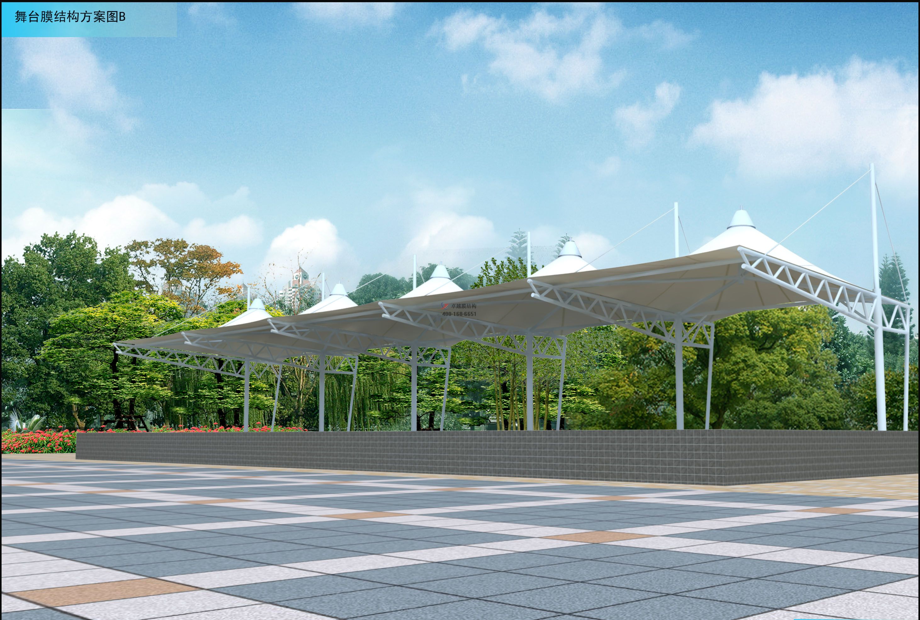 膜結(jié)構(gòu)舞臺(tái)主要應(yīng)用于各類體育場(chǎng)、廣場(chǎng)、公園等,我司是具有獨(dú)立法人資格,獨(dú)立設(shè)計(jì)施工、獨(dú)立生產(chǎn)加工
