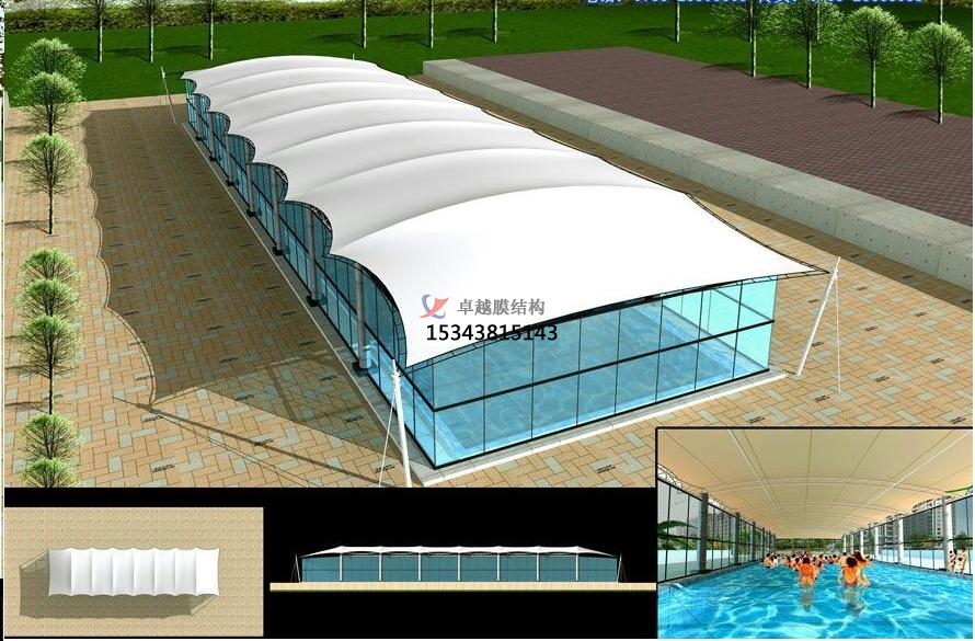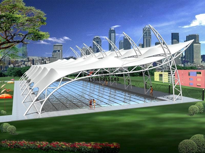 游泳館膜結(jié)構(gòu)是一種適用于大型游泳館建造的先進(jìn)技術(shù),通?;阡摻Y(jié)構(gòu)或光鋼結(jié)構(gòu)框架等穩(wěn)定型構(gòu)件,采用高強(qiáng)度、高韌性的PVDF膜或PTFE膜作來(lái)覆蓋整個(gè)館內(nèi)空間,并形成周邊固定結(jié)構(gòu)的耐候和保護(hù)部件所構(gòu)成的一種膜形結(jié)構(gòu)體系。