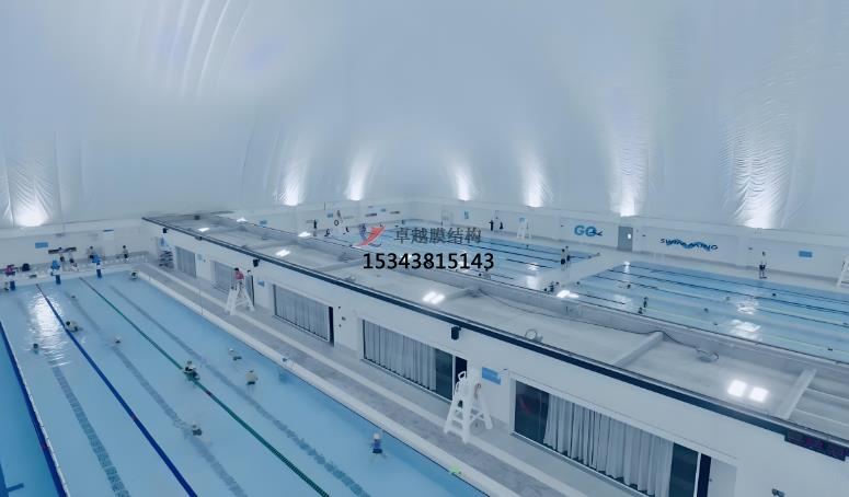膜結(jié)構(gòu)游泳館具有良好的保溫隔熱性能,同時(shí)膜結(jié)構(gòu)更有利于空氣流通和污染控制,有效減少氯氣、異味等問(wèn)題,提升整體舒適度,且能有效阻擋外界熱量傳入或傳出,穩(wěn)定館內(nèi)溫度,為游泳者營(yíng)造舒適的環(huán)境,同時(shí)也降低了空調(diào)等設(shè)備的能耗。膜結(jié)構(gòu)游泳館的建設(shè)周期短,成本較低。氣膜建筑修建迅速,既環(huán)保節(jié)能又恒溫防水防潮,在整體建筑環(huán)節(jié)中不應(yīng)用一磚一瓦,節(jié)約了大多數(shù)的建筑成本膜結(jié)構(gòu)的加工制作可在工廠完成,現(xiàn)場(chǎng)安裝速度快,與傳統(tǒng)建筑相比,能大大縮短建設(shè)周期,盡快投入使用。膜結(jié)構(gòu)游泳館場(chǎng)館內(nèi)配備24小時(shí)智能檢測(cè)系統(tǒng),實(shí)時(shí)監(jiān)測(cè)空氣質(zhì)量、溫度和濕度,確保泳池水質(zhì)清澈、空氣清新,讓每一位泳者都能暢享健康舒適的運(yùn)動(dòng)體驗(yàn)。膜材具有良好的耐候、防水性能,不會(huì)像傳統(tǒng)鋼結(jié)構(gòu)那樣出現(xiàn)場(chǎng)館銹蝕的問(wèn)題。氣膜游泳館的頂部一般采用弧形設(shè)計(jì),水汽不易凝結(jié),因此膜面也不會(huì)發(fā)生霉變。