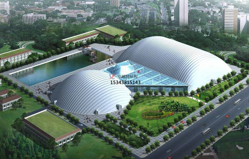 展覽館。展覽館有著臨時性、面積大的特點,而使用充氣膜來建造展覽館,更加實用,且充氣膜本身就是有別于傳統(tǒng)建筑的新型建筑,與生俱來的坐標,可以吸引人氣。