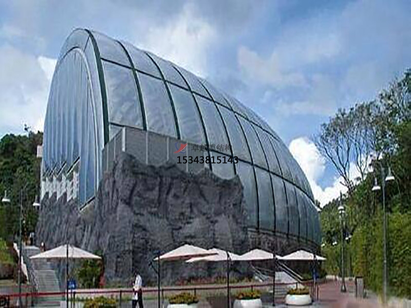 從客觀上是來看,膜結(jié)構(gòu)展覽館是與其他得展覽館得建筑是*大的不同就是在外形上是擯除了單一的直線線條,是增加了弧形得線條,而這一弧形線條的實(shí)現(xiàn)是得益于膜結(jié)構(gòu)是所采用的具有張拉性質(zhì)的膜材料,PTFE膜材料是在極細(xì)的玻璃纖維編織成的基布上是涂上了PTFE(聚四氟乙烯)樹脂而形成的復(fù)合材料。