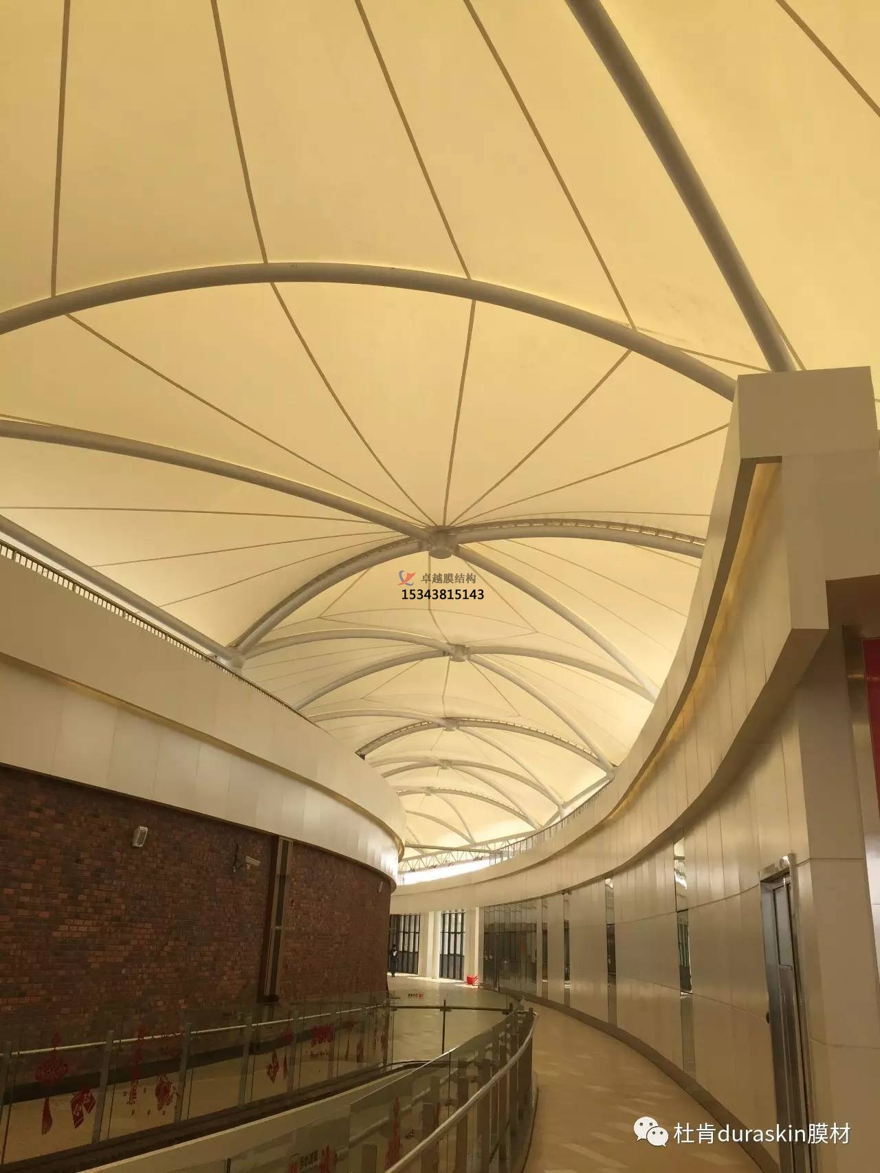 建筑入口使城市公共空間與建筑空間相鄰的界面,成為城市空間的組成部分。它是人們視覺更先接觸的部分,因此,除了功能以外,還應(yīng)有很強(qiáng)的標(biāo)識性,并能體現(xiàn)建筑的個性,是建筑環(huán)境和城市景觀的重要組成部分。由于膜結(jié)構(gòu)自然的曲線美是其他結(jié)構(gòu)類型無法比擬的,故成為近來建筑入口及屋頂經(jīng)常采用的形式。
