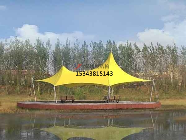 景觀膜結(jié)構(gòu)遮陽棚有較高的反射性及較低的光吸收低,并且熱傳導(dǎo)性較低,這極大程度上阻止太陽能進(jìn)入室內(nèi)。另外,膜材的半透明性保證了適當(dāng)?shù)淖匀宦⑸涔庹彰魇覂?nèi)。由于自重輕,膜建筑可以不需要內(nèi)部支撐面大跨度覆蓋空間,這使人們可以列靈活、更有創(chuàng)意地設(shè)計(jì)和使用建筑空間。