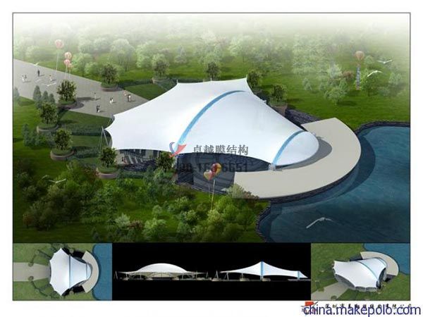 2、膜結(jié)構(gòu)它是一種建筑與結(jié)構(gòu)完美結(jié)合的結(jié)構(gòu)體系,是用高強(qiáng)度柔性薄膜材料與支撐體系相結(jié)合形成的具有一定剛度的穩(wěn)定曲面,能承受一定外荷載的空間結(jié)構(gòu)形式。更好的膜結(jié)構(gòu)設(shè)計(jì)是結(jié)構(gòu)與外形的有機(jī)融合,使其顯得了類拔萃,同時(shí)與自然環(huán)境、歷史及現(xiàn)代的城市景觀有機(jī)結(jié)合。輕型結(jié)構(gòu)可以看成是大型的雕塑作品,可為其周邊空間增添活力,成為周圍環(huán)境的補(bǔ)充和焦點(diǎn)。