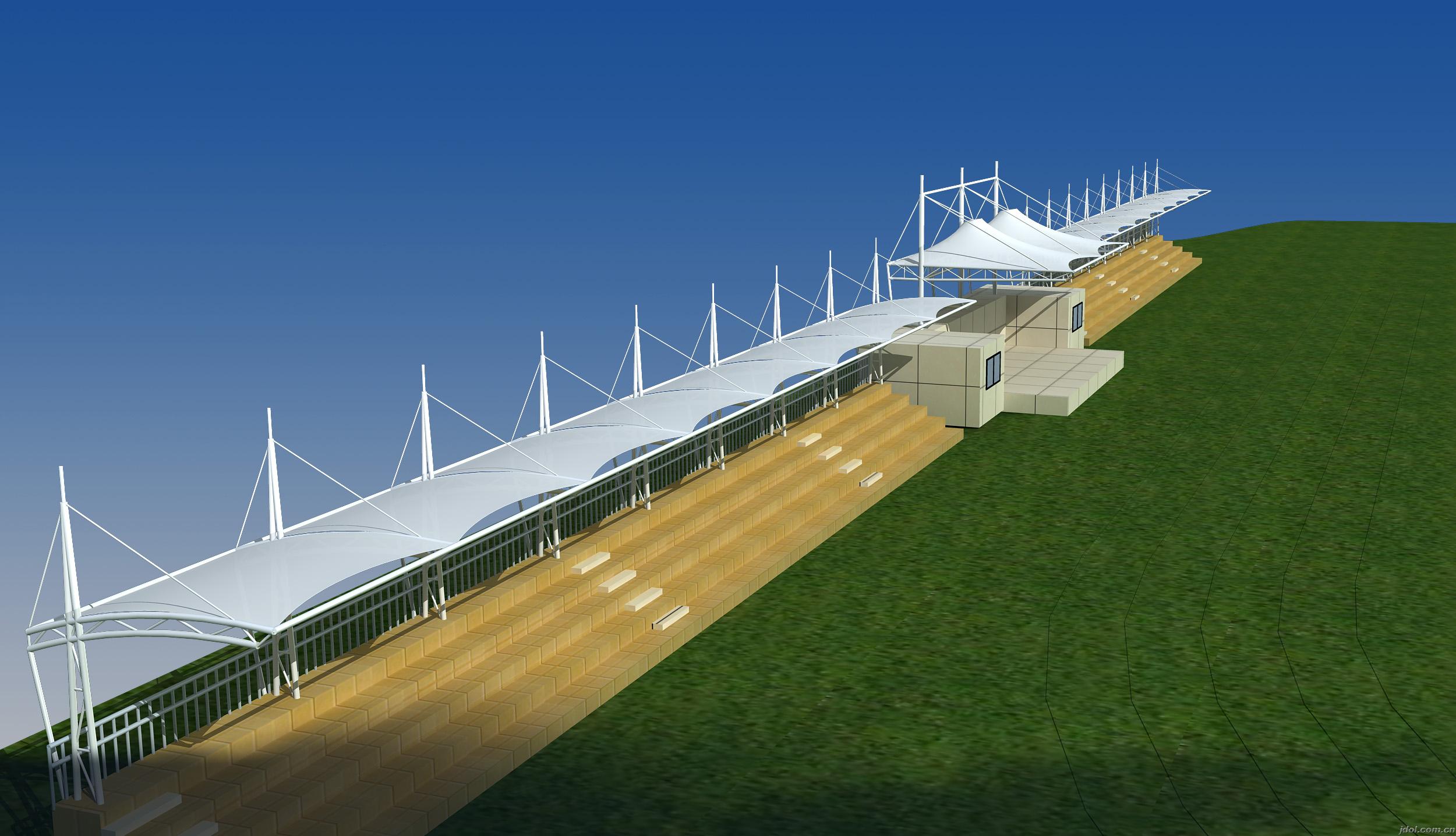 膜結(jié)構(gòu)作為大跨度體育場和體育場館的主要受力構(gòu)件和新型屋面體系,直接影響著建筑的安全性和功能。目前,膜結(jié)構(gòu)體育場看臺在我國得到了廣泛的應(yīng)用。膜結(jié)構(gòu)建筑能很好地覆蓋整個看臺。膜結(jié)構(gòu)的張拉式使建筑的空間跨度更大,同時降低了建筑的整體重量,使建筑更容易、更安全。這也是人們選擇膜結(jié)構(gòu)的重要原因。