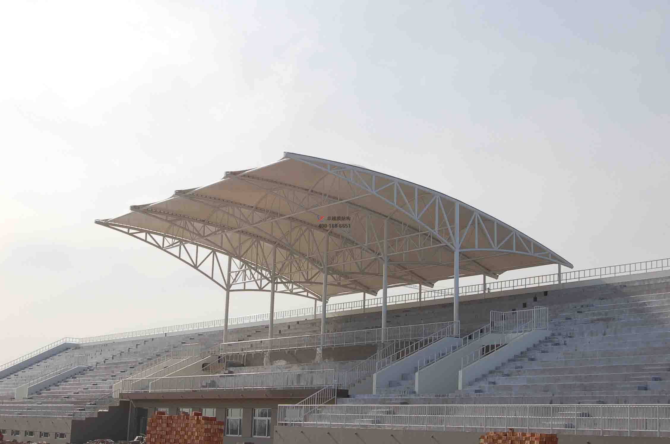 體育看臺張拉膜結(jié)構(gòu),指的是在體育看臺上方搭建的張拉膜結(jié)構(gòu)頂棚,主要起到遮陽擋雨的作用。而體育看臺涉及的范圍也很廣泛,一般指的是體育場、運(yùn)動場、球場等體育場地周圍供觀眾休息和觀看比賽的輔助設(shè)施,另外還包括體育場或運(yùn)動場的主席臺、演講臺等。體育看臺作為體育場的組成部分具有不可替代的作,而體育看臺張拉膜結(jié)構(gòu)做為看臺的防護(hù)措施,起到錦上添花的作用。