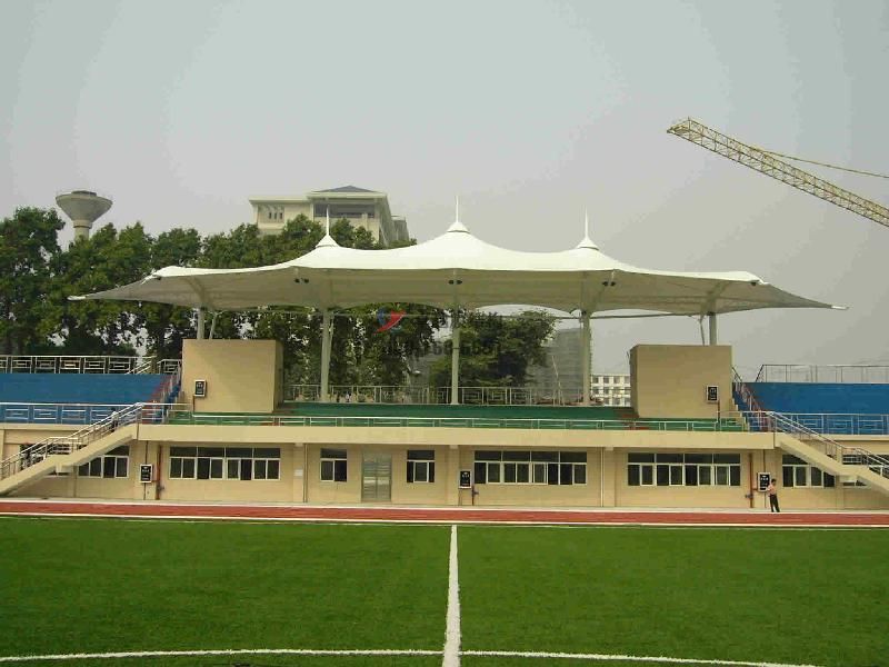 張拉膜看臺主要用于各類地方體育場主席臺雨棚,各類學(xué)校體育場看臺雨棚遮蓋,我公司是國內(nèi)較早從事大懸挑張拉膜結(jié)構(gòu)看臺設(shè)計(jì)施工的專業(yè)廠家,下面介紹一下我們在濟(jì)南市周邊縣市完工的一些張拉膜看臺設(shè)計(jì)施工案例,我公司先后在濟(jì)南周邊承接了山東大學(xué)張拉膜看臺雨棚、德州科技職業(yè)學(xué)院張拉膜看臺罩棚、齊魯工業(yè)大學(xué)張拉膜看臺遮陽棚等設(shè)計(jì)施工項(xiàng)目,簡介如下: