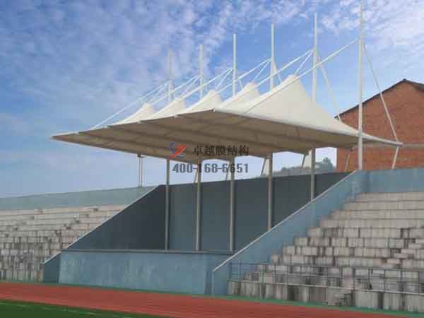 張拉膜看臺主要用于各類地方體育場主席臺雨棚,各類學(xué)校體育場看臺雨棚遮蓋,我公司是國內(nèi)較早從事大懸挑張拉膜結(jié)構(gòu)看臺設(shè)計施工的專業(yè)廠家,下面介紹一下我們在崇左市周邊縣市完工的一些張拉膜看臺設(shè)計施工案例,我公司先后在崇左周邊承接了廣西民族師范學(xué)院張拉膜看臺雨棚、崇左幼兒師范高等??茖W(xué)校張拉膜看臺罩棚、廣西城市職業(yè)大學(xué)張拉膜看臺遮陽棚等設(shè)計施工項目,簡介如下: