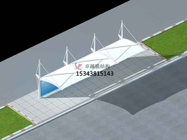膜結構雨棚是一種全新的建筑結構形式,它集建筑學、結構力學、精細化工與材料科學、計算機技術等為一體,具有很高技術含量。其曲面可以隨著建筑師的設計需要任意變化,結合整體環(huán)境,建造出標志性的形象工程。