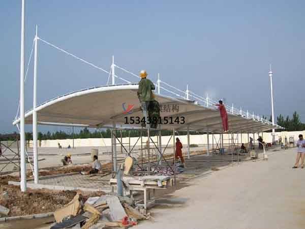 膜結(jié)構(gòu)雨棚是一種全新的建筑結(jié)構(gòu)形式,它集建筑學(xué)、結(jié)構(gòu)力學(xué)、精細(xì)化工與材料科學(xué)、計(jì)算機(jī)技術(shù)等為一體,具有很高技術(shù)含量。其曲面可以隨著建筑師的設(shè)計(jì)需要任意變化,結(jié)合整體環(huán)境,建造出標(biāo)志性的形象工程。