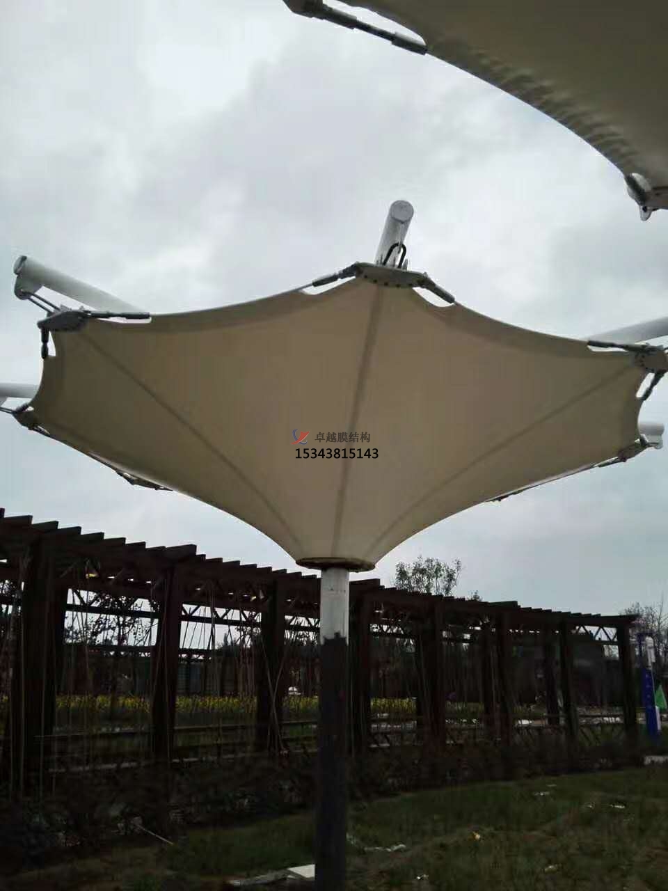 6、景觀膜結(jié)構(gòu)不僅能夠根據(jù)園林景觀的實(shí)際情況設(shè)計(jì)出能夠跟自然景觀和諧一體的造型,重要的是還能提供豐富多彩的用途,讓人賞心悅目,景觀膜結(jié)構(gòu)充分展示了結(jié)構(gòu)構(gòu)件清晰受力的藝術(shù)之美,配合周?chē)吧珓?chuàng)造出一種現(xiàn)代與自然結(jié)合的感覺(jué);