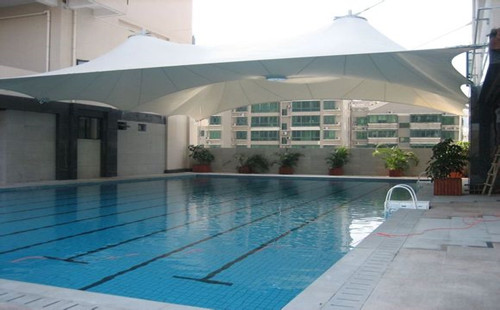 近幾年膜結構車棚遮陽棚、看臺遮陽棚已廣泛應用,試想一下游泳池藍天碧水之間搭配造型獨特的張拉膜遮陽棚或遮陽亭,是一種多么和諧的視覺享受。泳池膜結構遮陽棚不僅外形亮眼,更重要的是它具備高強度、高耐久性、防紫外線和隔溫效果,讓人們戲水的同時更覺愜意。