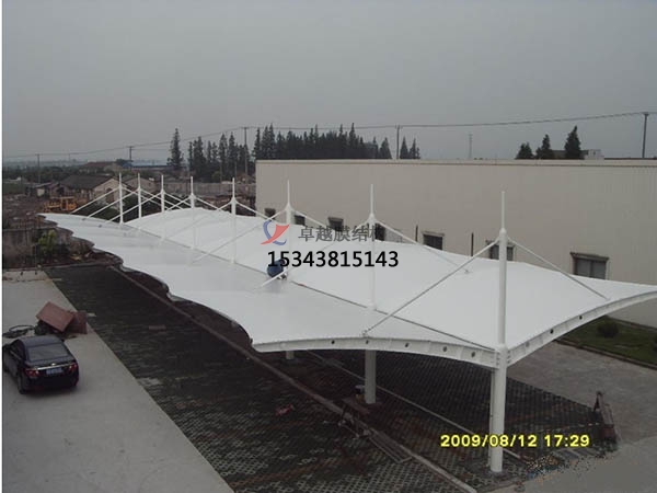 (6)膜結(jié)構(gòu)工期短。膜片的裁剪、鋼索及鋼結(jié)構(gòu)等的制作均在工廠完成,減少現(xiàn)場(chǎng)施工時(shí)間,可與下部鋼筋混凝土結(jié)構(gòu)或構(gòu)件等同時(shí)進(jìn)行,避免施工交叉,在施工現(xiàn)場(chǎng)只是鋼索、鋼結(jié)構(gòu)及膜片的連接安裝定位及張拉的過(guò)程,故現(xiàn)場(chǎng)施工安裝、迅速快捷,相對(duì)傳統(tǒng)建筑工程工期較短。