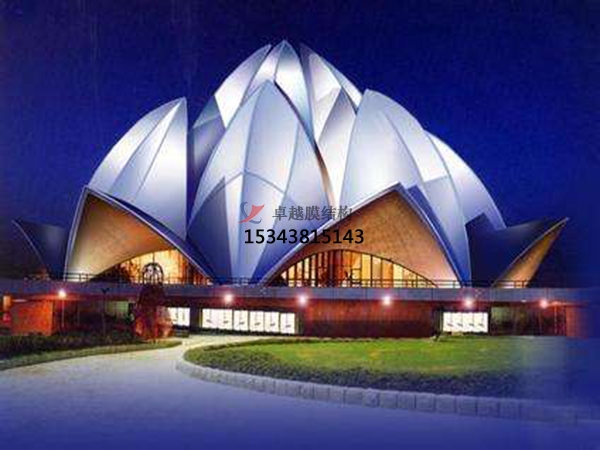 膜結(jié)構(gòu)的結(jié)構(gòu)形式:是由多種高強(qiáng)薄膜材料PVC或Teflon及加強(qiáng)構(gòu)件鋼架、鋼柱或鋼索通過(guò)一定方式使其內(nèi)部產(chǎn)生一定的預(yù)張應(yīng)力以形成某種空間形狀,作為覆蓋結(jié)構(gòu),并能承受一定的外荷載作用的一種空間結(jié)構(gòu)形式。